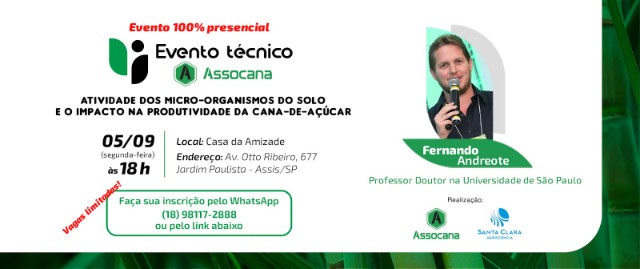 Atividades dos Micro-organismos no solo e Impacto na Produtividade da Cana com Prof. Dr. Fernando Andreote em 05/09/2022 - Apoio Santa Clara Agrociênc